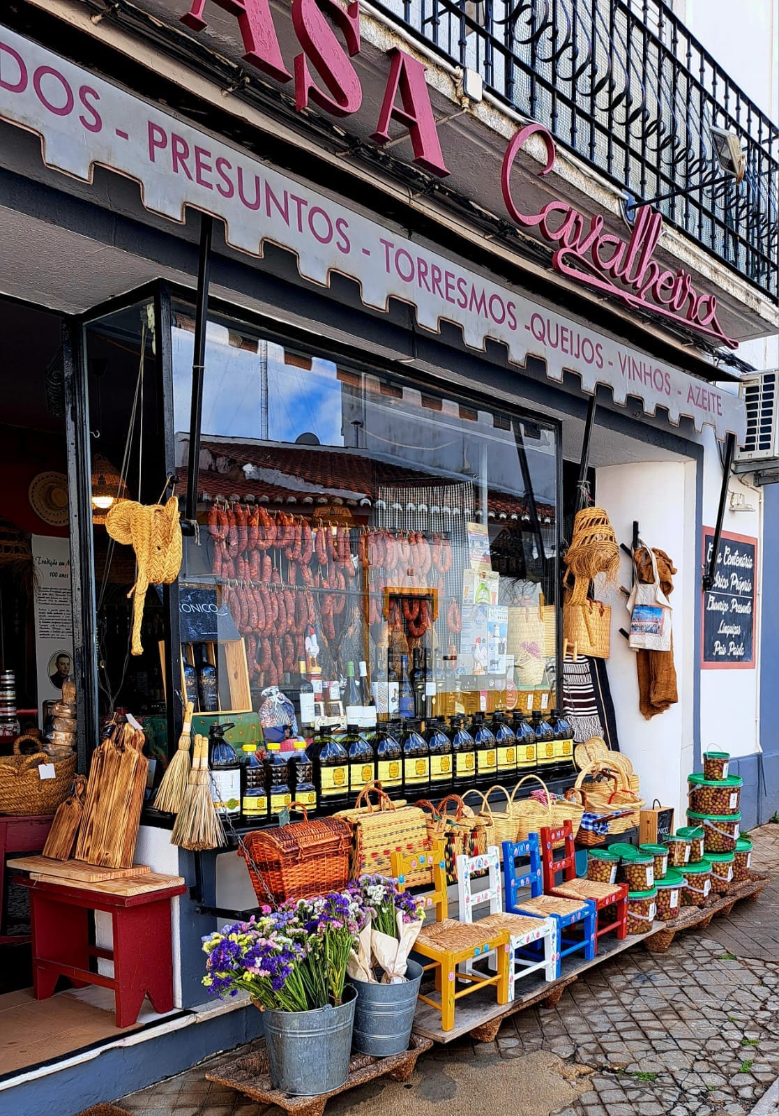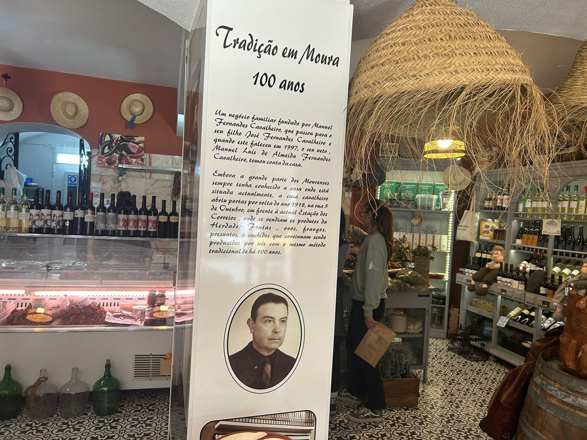Then we move on toMoura, one of the cities with the greatest tradition in the production of olive oil and sausages in the Alentejo. Here we will visit theCavalheiro House, a traditional store with more than100 years of history, officially recognized asStore with History. In this family space you will have the opportunity to learn more about the local tradition, learn about the sausage production process and taste some of its handmade products, includingpaios, traditional sausages, regional cheeses and local wines.
